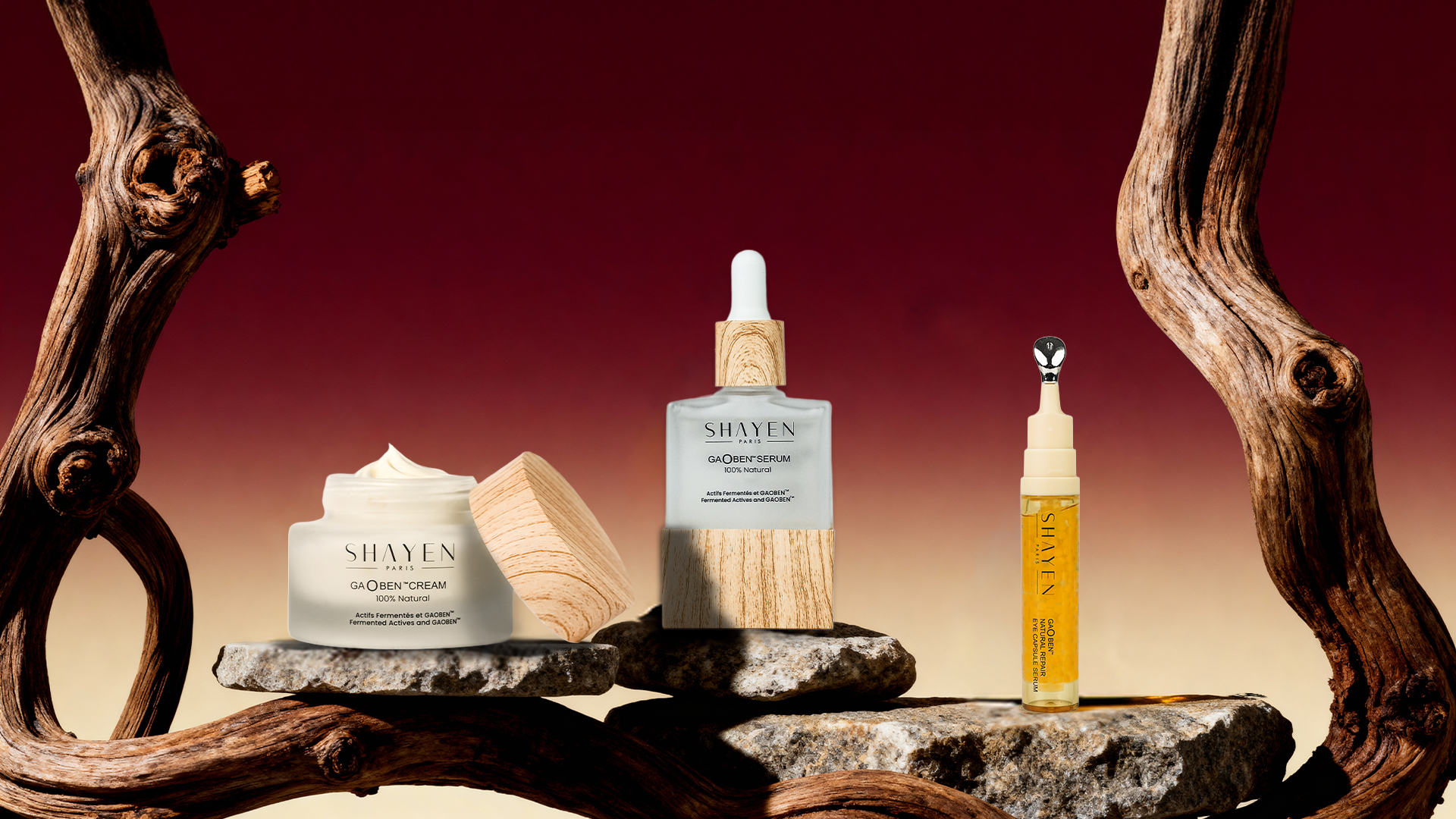 SHAYEN Paris skincare products on a black background SHAYEN Paris skincare products on a black background